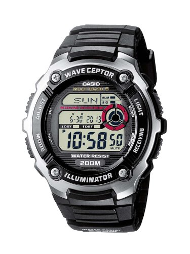 Casio Wave Ceptor WV-200E-1AVEF Alarme Chronographe Hommes Numé rique Montre Plongé e Boî tier en acier inoxydable/plastique, noir/argent Bracelet en plastique ...