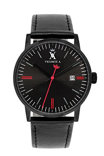 Vicomte A. - VA 013/3AA - Montre Homme - Quartz Analogique - Cadran Noir - Bracelet Cuir Noir: Amazon.fr: Montres