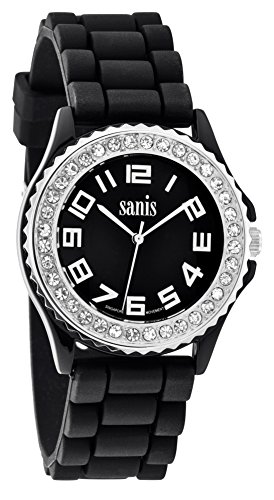 M&c Femme | Montre Noire Robuste en Silicone Ton sur Ton avec Lunette Sertie de Cristaux | SN9601L Cette puissance éventuellement s’agir de rechange montres votre choix