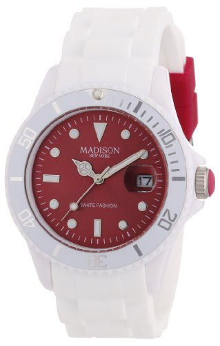 Madison New York - SU4359R8 - Montre Mixte - Quartz Analogique - Cadran Rouge - Bracelet Silicone Blanc Cela peut éventuellement s’agir de rechange montres votre choix