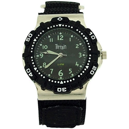 Terrain Montre Hommes Look Surf Bracelet Velcro Noir TV 970G. Une montre robuste et vigoureusement masculine. La marque Terrain propose ici une sport, parfaitement ...