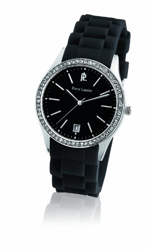 Pierre Lannier - 025L639 - Montre Femme - Quartz Analogique - Cadran Noir - Bracelet Silicone Noir - Strass Cela peut éventuellement s’agir de rechange montres votre choix