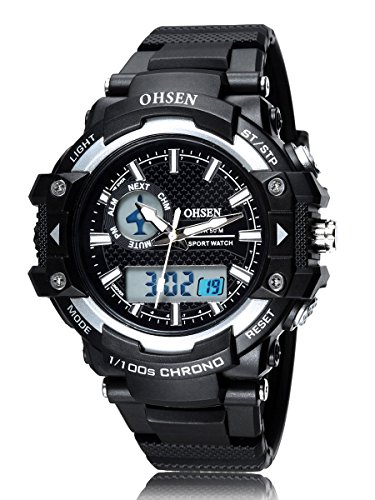 Alienwork 5ATM Analogique-Digital Montre multifonction LCD numérique Rétroéclairage Polyuréthane noir noir OS.AD1506-2 Cette puissance éventuellement s’agir de rechange montres votre choix
