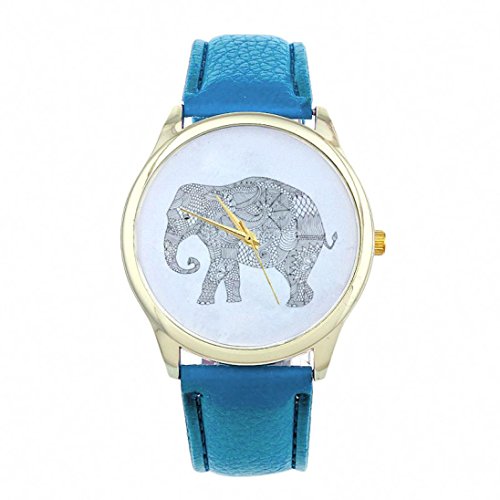 DDLBiz® Design simple Femmes Montres à Quartz avec Motif d'éléphant Imprimé, Montres Analogiques Bracelet Vert en Cuir PU Ce mai éventuellement s’agir de rechange montres votre choix