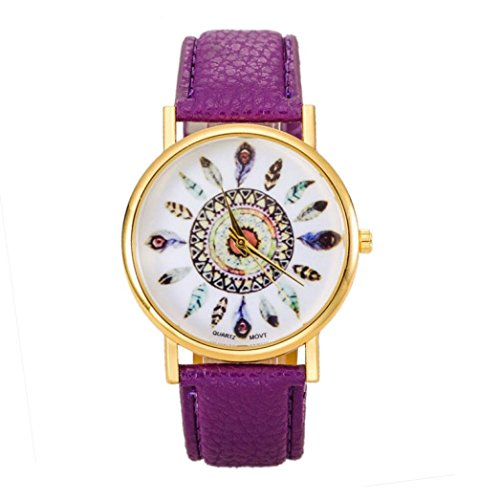 DDLBiz® Style classique Femmes Montres à Quartz avec Motif de Plumes Paon, Montres Analogiques Bracelet Violet en Cuir PU Ce mai éventuellement s’agir de rechange montres votre choix