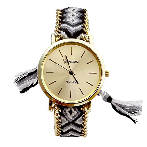 JSDDE 1PC Joile Femmes Tricot Tressé Tissé Rope Band Bracelet Quartz Composer Montre Noir Cela peut éventuellement s’agir de rechange montres votre choix