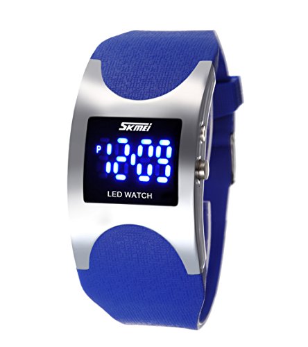 Die ufengke® cas en forme d'arc créatrice de mode a conduit montre à bracelet imperméable de gelée,les enfants de lumière de nuit silicone bande cadeau poignet montre à bracelet,bleu Details